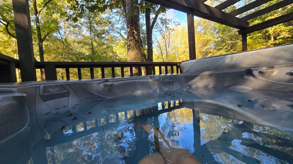 The payoff was a beautiful, private sprawl in a thicket of trees each slowly sprinkling their colors to the ground below. The deck that wrapped around the property had two sections, one where a hot tub promised an excellent soak, and a second where a grill would make for a properly festive cookout had I the company.