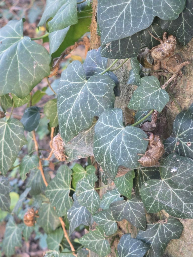 The backyard has proffered sights like the shell carapaces discarded by numerous cicada, the pure white feathers of the neighbor’s chicken floating through the fence, the moss and vine ground cover that sprawls beneath a bed of crisp leaves repeatedly soaked by downpours and dried in prevailing sunlight. The property has several old towering trees forming its perimeter, each of which begs to be climbed though I resist – knowing without asking that the folks from whom I am renting would prefer I refrain. There’s a fair amount of firewood heaped in a circular concreted pit, though I fear the aforementioned downpours would require extensive drying for any of it to light. Taking the time to slow down, I engage the senses and become curious to notice what I otherwise ignore when focused on entreating my dog to poop already so I can get back to work; it enables being more present and mindful, another regulator of the chatterbox mind and hummingbird heart.