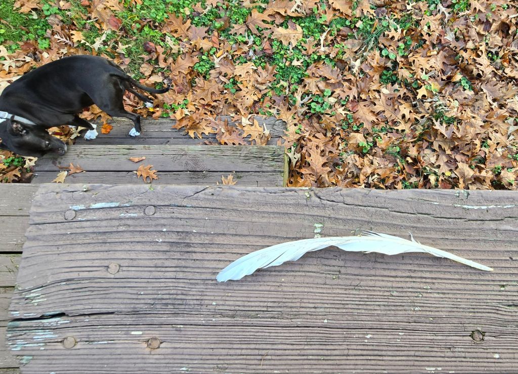 Backyard vignettes include a soundtrack of dogs as each neighbor (6 that surround this property) all have dogs of their own, enthusiastic to witness and or participate in the outdoor rituals of my dog’s potty breaks in their own unique personal ways. The dog at the back of the property runs along the fence with her, playful and enamored as they share sniffs and kisses through the chain links like lovers across borders. In contrast, one of the three dogs at the corner property instead vociferously informs Juniper of her near-trespass, pawing the ground like a charging bull while shouting what I can only assume are dog slurs from her side of the fence.